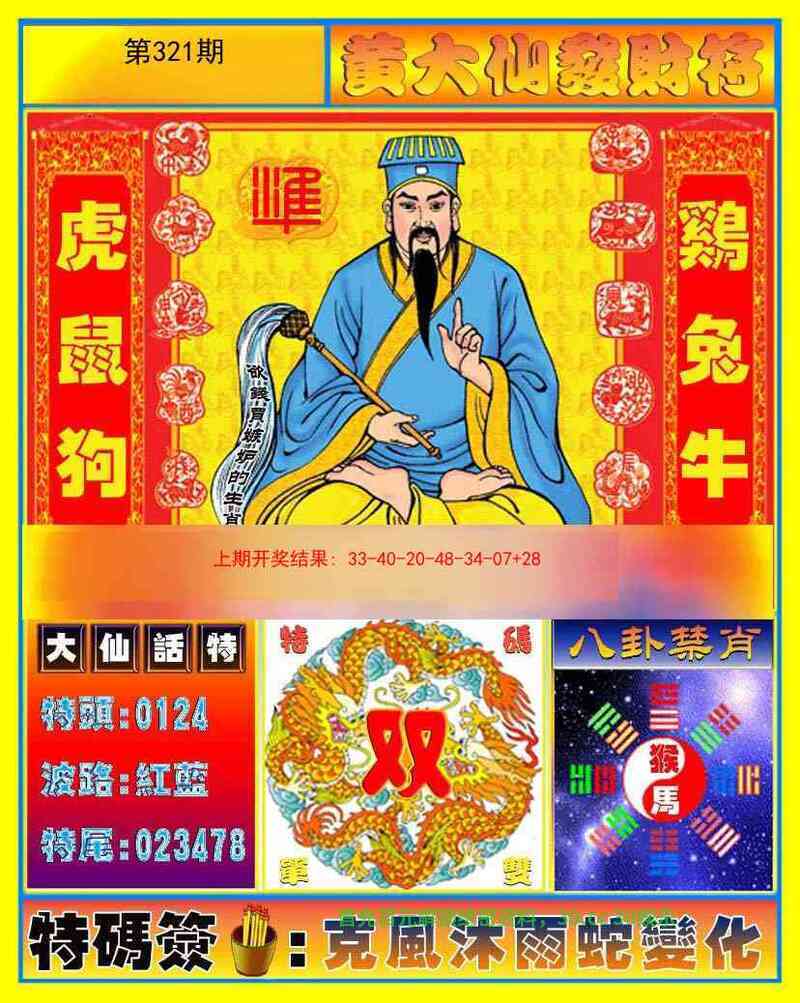 322期:黄大仙心水/简单好下注/台湾玄机诗/港台澳七肖/必中人物